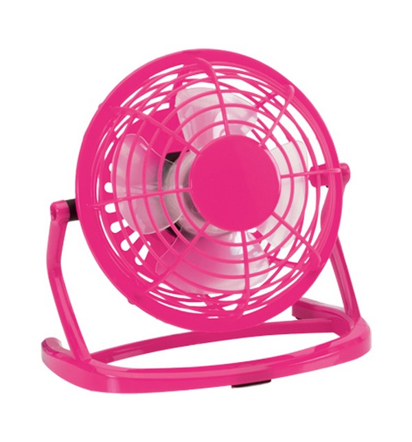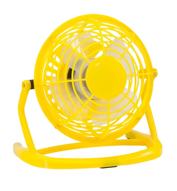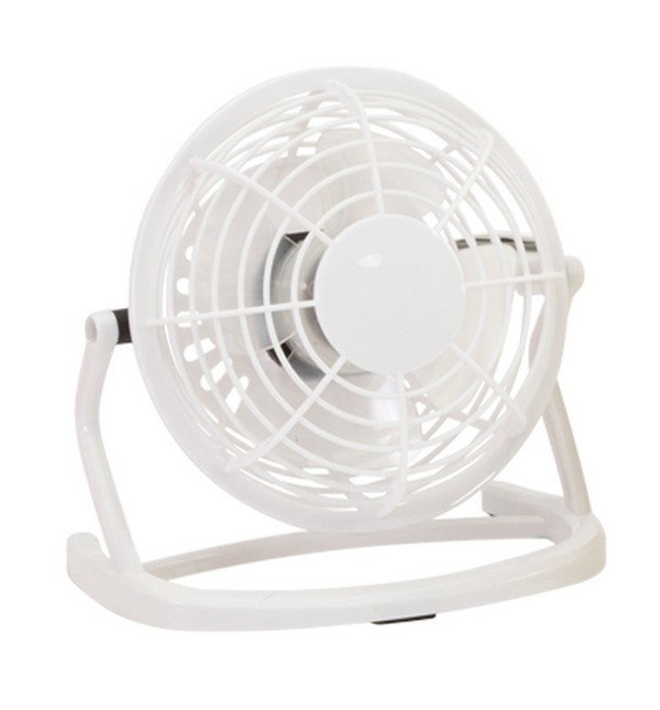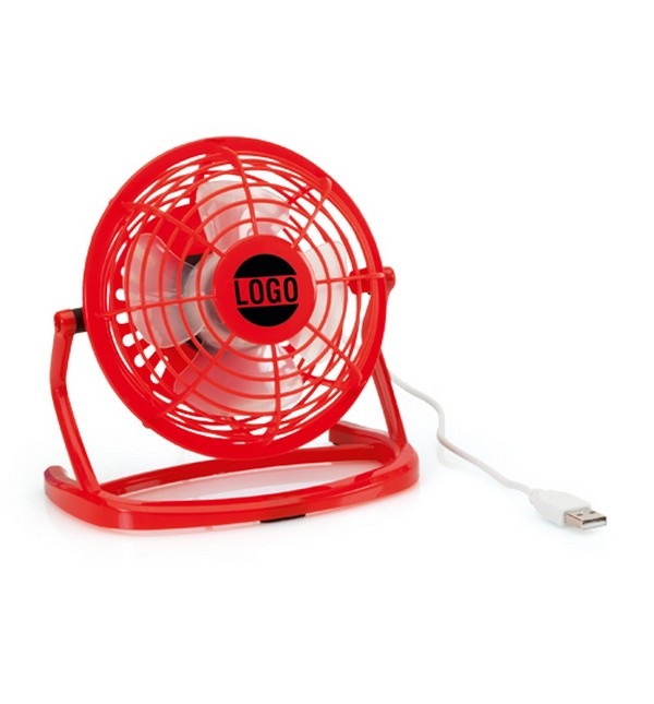 USB-driven skrivbordsfläkt. Synlig reklam på skrivbordet som är bästa reklamplatsen.